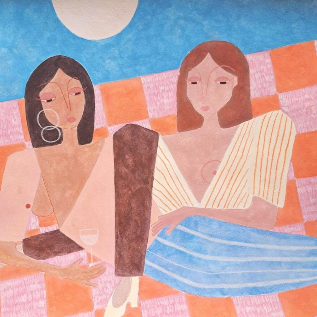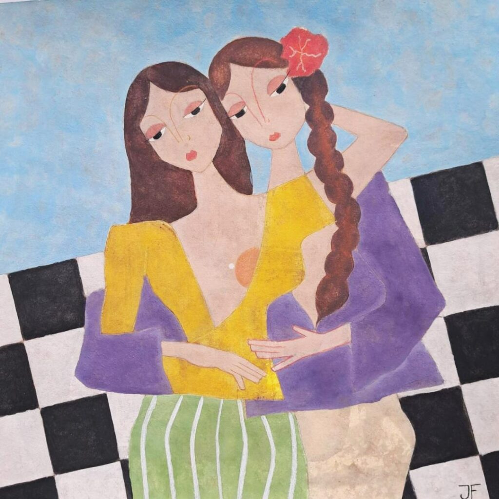 Ici, les femmes ne sont plus seules. Elles apparaissent deux par deux, entremêlées, proches, parfois fusionnelles, toujours complices.
